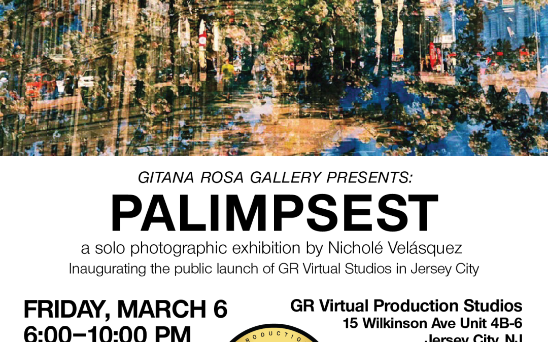 Gitana Rosa Gallery is pleased to present Palimpsest, a solo photographic exhibition by artist Nicholé Velásquez, opening Friday, March 6 from 6:00–10:00 PM at GR Virtual Production Studios in Jersey City. Exhibition runs through May 1, 2026.