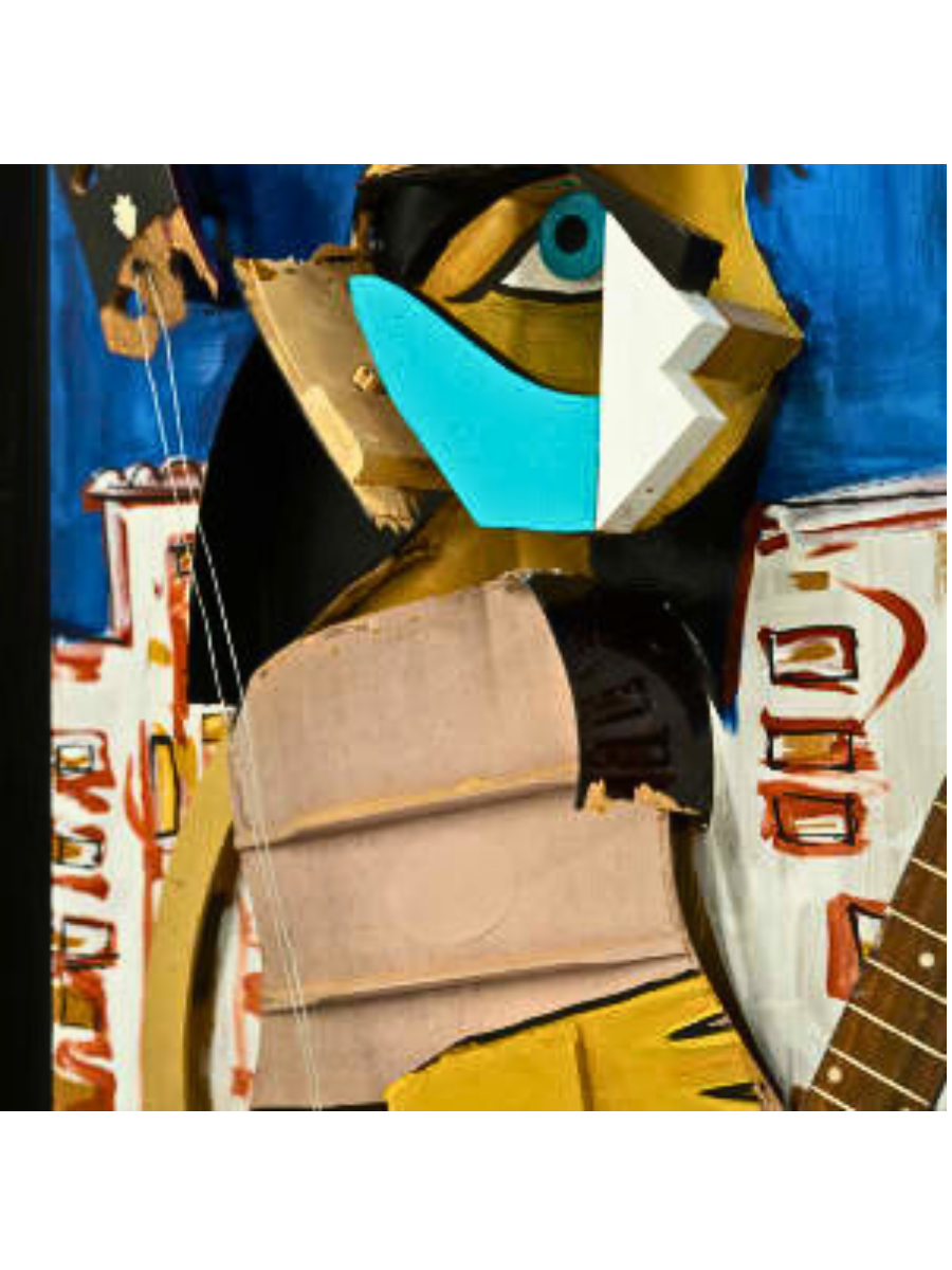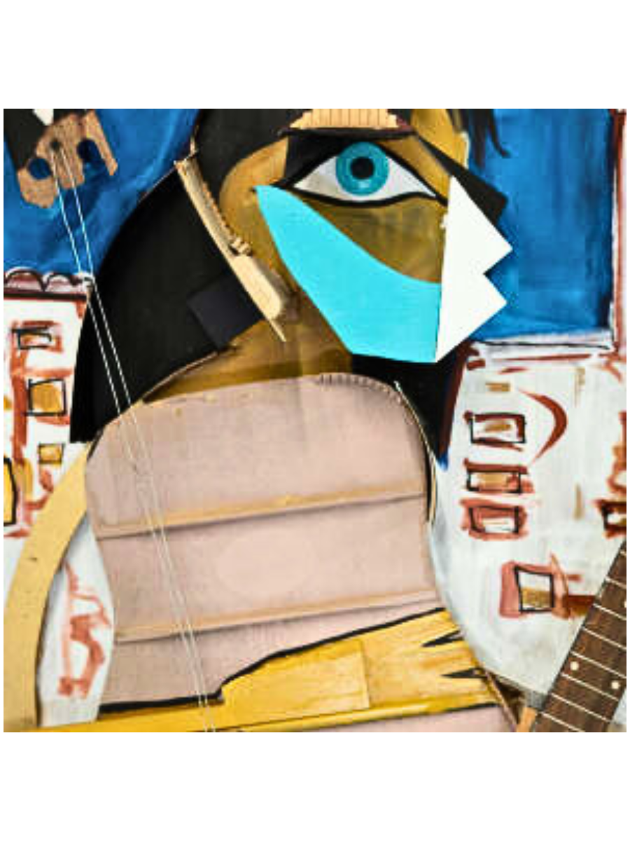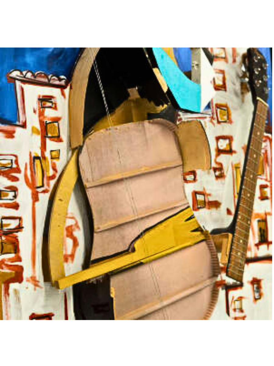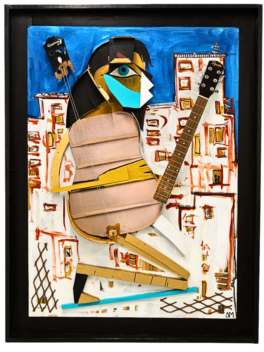 An unmatched creation, the Divine Sound is a two year labor of love crafted by an inspired guitar player. It stands as testimony to Picasso’s influence on this artist and features found objects that come together in dynamic ways – making it captivatingly dimensional from every angle.